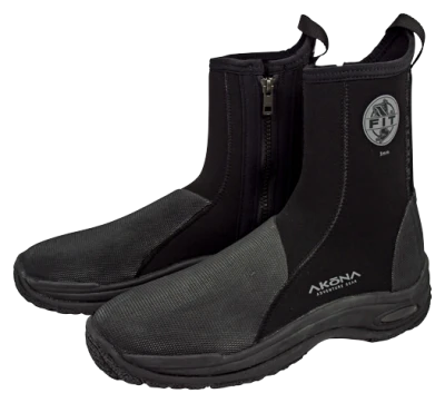 The AKONA Fit high-top boots have a “sneaker-like” molded sole. With arch support the AKONA Fit boots are both comfortable and durable. Nylon webbing runs vertically up the back of the boot to provide more durability and strength when pulling the boots on. The #5 YKK Zipper is durable and salt water safe.