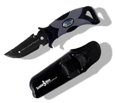 Comes with slide-lock-in sheath that can be attached securely to a BCD.