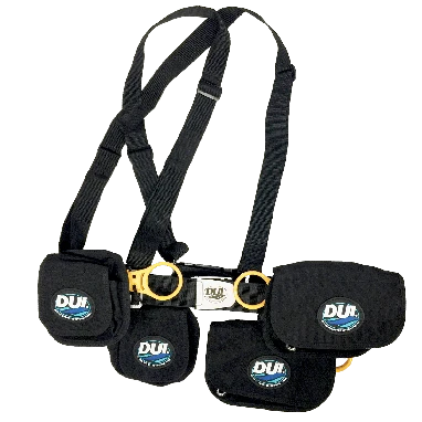 Get the weight off your back and increase your diving comfort with the new and improved DUI Weight and Trim System III.The harness allows you to comfortably wear up to 40 pounds and lets you adjust the weights up and down, forward and back so you can put your weights right where you want them.