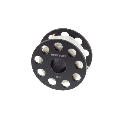 The spool is made from delrin, which does not lose its mechanical properties in water – in contrast to polyamide. The edges in the place of manipulation are rounded and the hole in the sidewalls have adjusted edges so that a cord does not get stuck. The reel is delivered with 25 m (82 ft.) of the thick braided PES cord with the diameter of 1,6 mm, designed especially for divers.