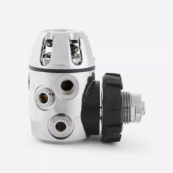 Streamlined open water regulator package, utilizing a fixed turret regulator for optimal hose routing.