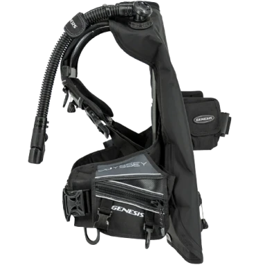 The Genesis Odyssey BCD is the perfect complement to the Award-Winning Genesis Origin. This is a back inflation model with similar weight system, features, and functionality to the Origin (see SKU: GNSO). Lightweight and ergonomic, the Genesis Odyssey has all the functions and features you are looking for in a back inflation BCD. The easy to access quick release ditchable weight pockets hold up to 10 lbs. (4.54kg) of weight each along with two 5 lbs. (2.27kg) trim weight pockets. The back inflation air-cell is low-profile, easily expands and contracts with the assistance of an air-cell bungee cord. In addition, this BC is Pro-Kit fit ready (see SKU’s: GNSBPKL, GNSBPKM) and has two expandable zipper pockets.