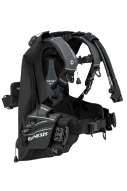 Built-to-Last: 600D polyester with PVC backing and a 420D nylon urethane laminated radio frequency (RF) welded air-cell for years of reliable use. Buoyancy control is made easy with the Genesis power inflator mechanism with cable activated pull dump at the left shoulder and a pull dump valve on right shoulder. The BCD is also equipped with a lower rear right pull dump/overpressure relief valve with manual pull for trimming of buoyancy when you are inverted in the water. The Genesis power inflator comes with a 3/8″ threaded quick-disconnect low-pressure hose.