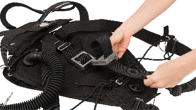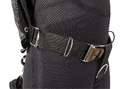Deluxe style harness provides a customizable and comfortable fit for nearly any size diver. The harness can be easily replaced. The waistband is designed to sit lower on the diver’s hips, optimal for trimming out cylinders attached to the waist.