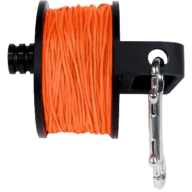 A reliable primary reel is a necessity whether you’re discovering a virgin cave or exploring a deep shipwreck. Not only must your reel be dependable, it also must be robust and easy to deploy. Our new 200ft and 400ft primary reels combine simplicity with durability so you can get on with your deepest explorations without any worries about performance. The handles on both sizes are machined with 6061-T6 hard anodized aluminum to prevent cracking or breaking. They feature rugged high-tensile Delrin® spools that will never warp when fully loaded with line; ultra bright, hi-viz #24 orange line is easily noticed in all low light, and a main bolt design retains the spool and hardware to keep all the components intact.