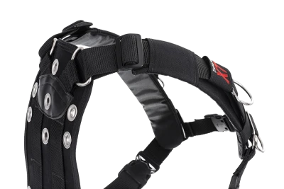 The TransPac XT evenly balances weight across the hips and back distributing the weight of single or double tanks. The wrap-around hip belt made of dual density foam, snugly hugs the lower back giving critical support and cushioning. Narrow, double-foam shoulder pads fit perfectly beneath the two-inch shoulder webbing to give chafe-free comfort. The high-tech, molded foam lumbar pad is contoured in all the right places with mesh airflow channels for instant draining topside and doubles as a lift-bag sleeve with an integrated pocket. Chest-support strap provides ultimate load distribution and when used with the removable, 1.5-inch crotch strap provides outstanding stability and comfort in the water. Transition plates at the shoulders allow for quick addition/deletion of hardware and finite adjustments. Dual cam straps are positioned to give plenty of head room for easy maneuvering in the water.