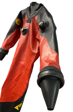 The suit has viking wrist rings installed for easy pull over gloves and quick seal replacement.